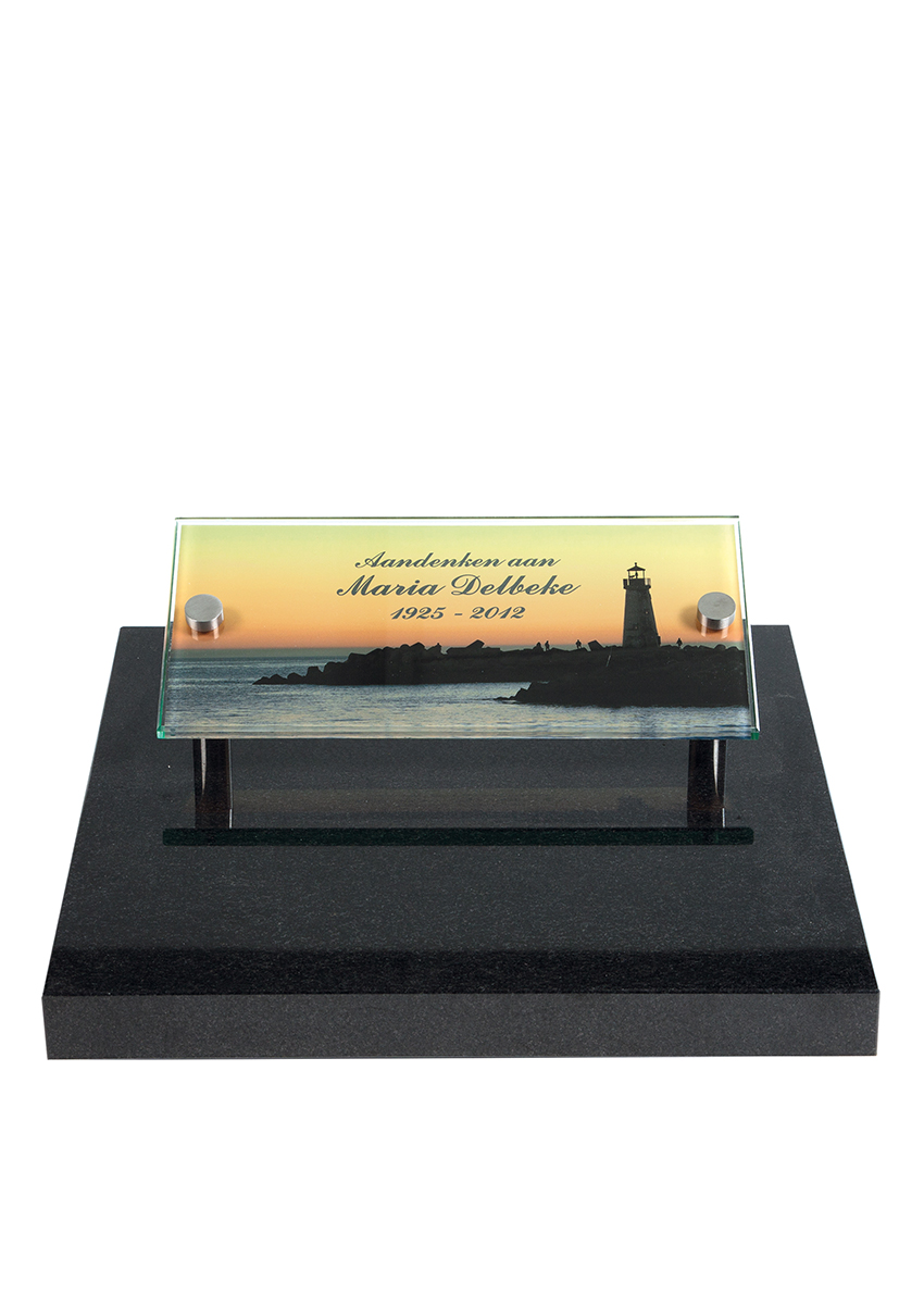 URNENVELD MET TEKST EN GLAS IN KLEUR